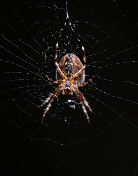La toile d’araignée forme un réseau de lignes presque géométrique qui dégage calme et précision. L’araignée elle-même ajoute de la tension à l’image, créant ainsi un contraste intéressant.
