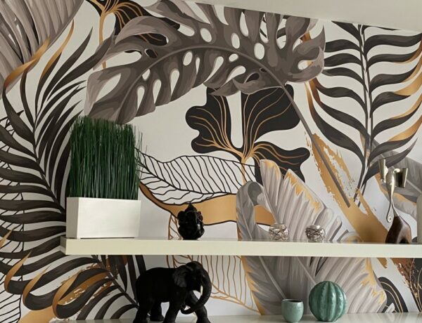 L’exemple suivant est très particulier, car cette impression crée une véritable illusion d’optique. Comme les étagères sont courbées en bas, votre mur semble l’être aussi. Le papier peint photo peut souvent créer une illusion d’optique, mais celle-ci est très particulière.