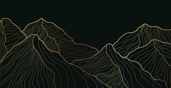 Des collines dorées sur un fond noir. Les couleurs or et noir donnent à ce papier peint un aspect luxueux.