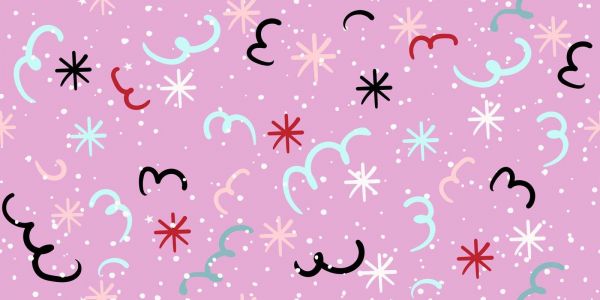 Un motif ludique avec des volutes fantaisistes, des petites étoiles et des pois sur un fond lilas — parfait pour des moments festifs ou des intérieurs joyeux.