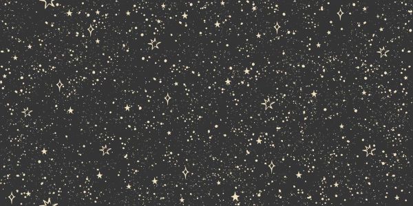 Un motif étoilé vivant avec des formes scintillantes, des éclaboussures et des petits points en crème douce sur un fond noir profond. Le motif dégage de la magie, de la légèreté et une touche de fantaisie.