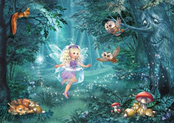 Ce design féerique capture la magie d'une forêt enchantée où une gracieuse fée aux ailes de papillon est au centre. Elle irradie une douce lumière tandis qu'avec sa baguette magique, elle donne vie à l'environnement forestier. La scène est peuplée d'animaux de la forêt amicaux, y compris des hiboux curieux, un écureuil espiègle et des faons et lapins endormis, qui créent ensemble une atmosphère harmonieuse et paisible. L'arrière-plan est dominé par un paysage forestier luxuriant avec de grands arbres, où la douce lumière de la lune filtre à travers les feuilles. La fée flotte au-dessus d'un champ rempli de particules lumineuses scintillantes, de champignons rouges à pois blancs et de délicates fleurs qui ajoutent une touche supplémentaire de magie à la scène. Un vieil arbre souriant semble veiller sur la fée et ses amis animaux, évoquant un sentiment de sécurité et de connexion. Ce design est parfait pour une chambre d'enfant ou un espace de jeu, où il crée une atmosphère imaginative et rêveuse. Pour un coin lecture ou un espace de détente, il apporte un sentiment de calme et de magie. Combinez-le avec des meubles et des accessoires dans des teintes naturelles comme le vert, le brun et le blanc doux pour embrasser pleinement l'atmosphère de la forêt enchantée. Les couleurs douces et les éléments détaillés rendent ce design idéal pour transformer un espace en un lieu d'émerveillement et d'inspiration. Il invite à raconter des histoires et à rêver, tandis que l'environnement forestier magique ajoute un charme unique à chaque intérieur.