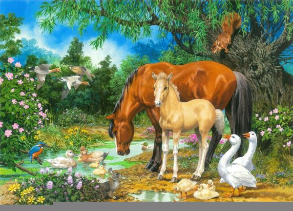 Papier Peint - Foal and Mare by the Stream