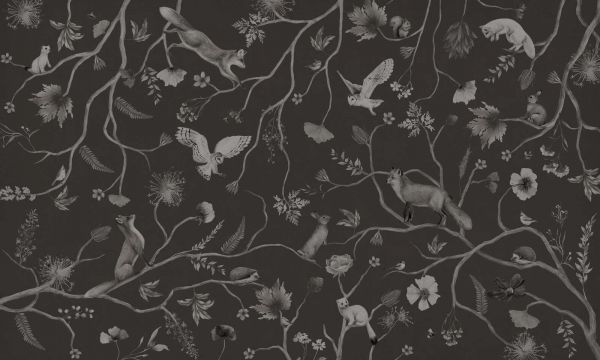 Papier peint panoramique - Forêt Ludique - Monochrome - Noir