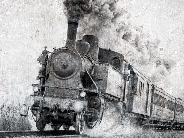 Locomotive à vapeur avec une vieille structure. Combinez ce papier peint dans votre maison et créez une atmosphère unique dans la pièce.