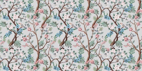 Ce motif présente une collection vibrante de branches, richement couvertes de fleurs multicolores et d'oiseaux gracieux. Le motif dégage un air de printemps naissant, avec une palette qui respire la tranquillité et la beauté naturelle.