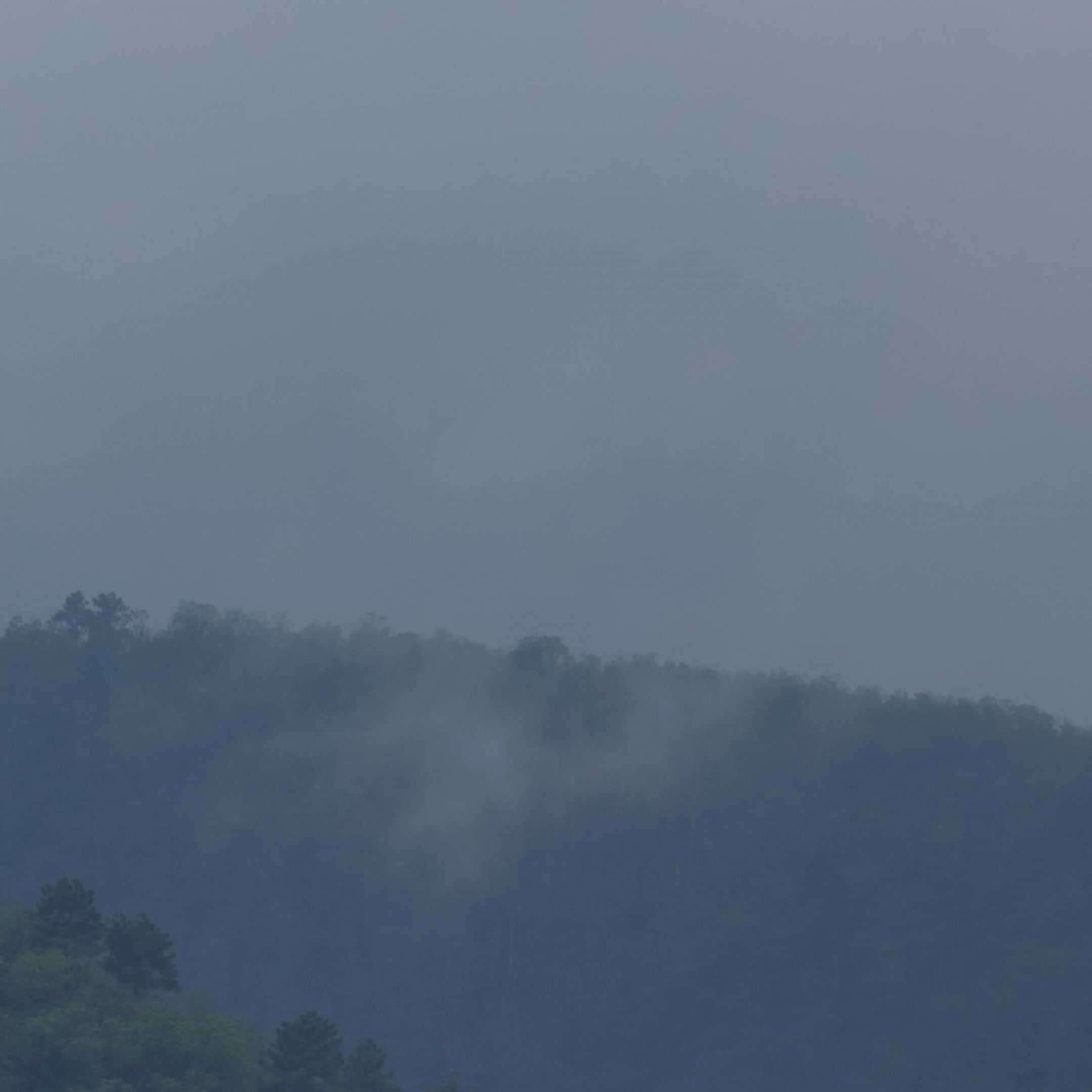 Nuages au-dessus des arbres dans les montagnes en différents matériaux
