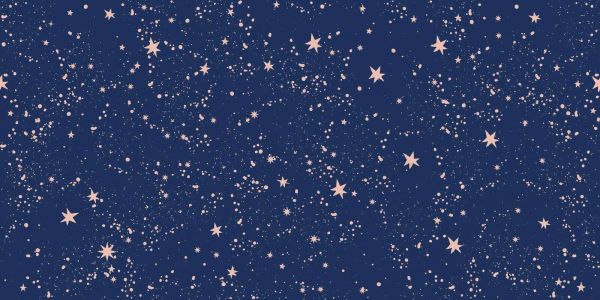 Un champ d'étoiles ludique de petites étoiles rose pâle sur un fond bleu nuit profond. Les éclaboussures aléatoires et les formes scintillantes donnent au motif une allure rêveuse et aérienne.