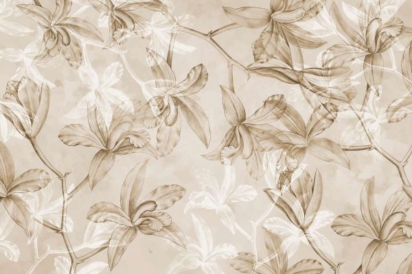 Une composition raffinée d'orchidées, dessinée avec des lignes détaillées et des teintes aquarelle subtiles. Le design dégage de la douceur grâce à des couleurs pastel délicates et un fond aérien, parfait pour une atmosphère sereine et élégante.