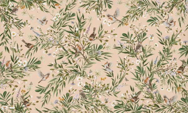 Papier peint panoramique - Rouges-gorges ludiques - Beige