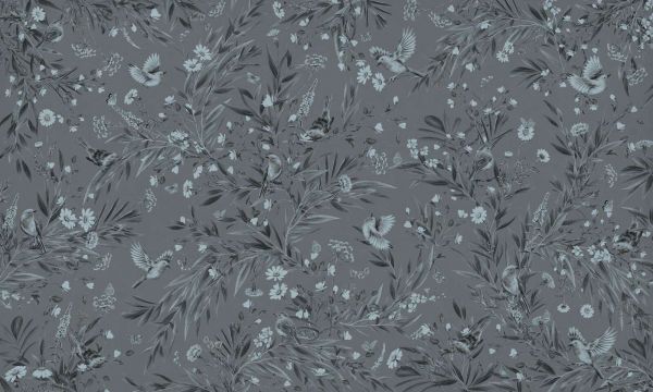 Papier peint panoramique - Rouges-gorges ludiques - Monochrome - Bleu