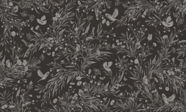 Papier peint panoramique - Rouges-gorges ludiques - Monochrome - Noir