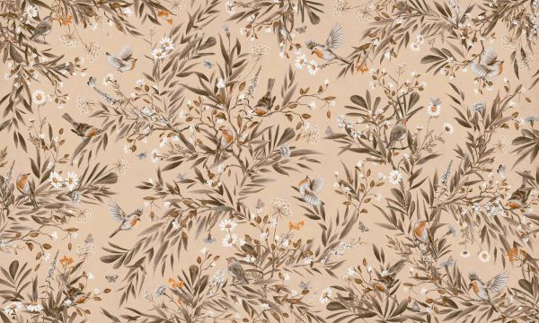 Papier peint panoramique - Rouges-gorges ludiques - Vintage - Beige
