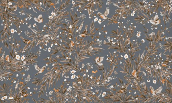 Papier peint panoramique - Rouges-gorges ludiques - Vintage - Bleu