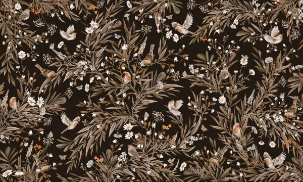 Papier peint panoramique - Rouges-gorges ludiques - Vintage - Noir