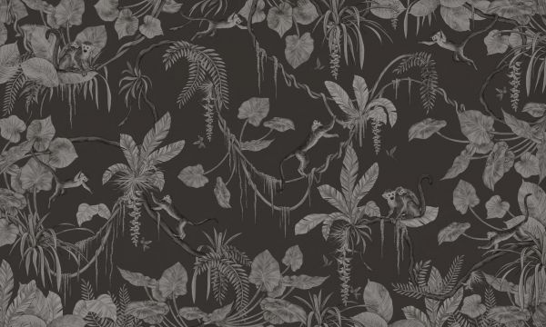 Papier peint panoramique - Singes ludiques - Monochrome - Noir