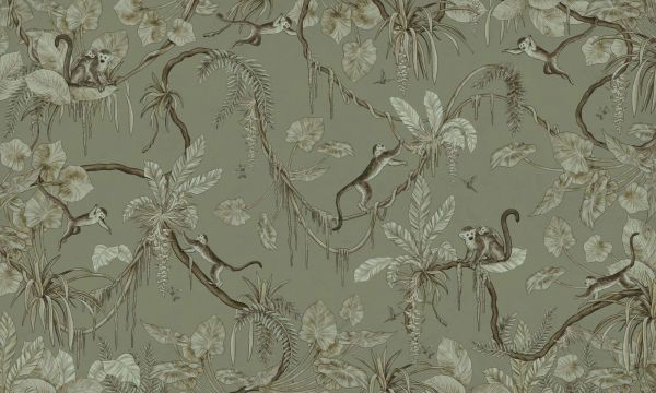 Papier peint panoramique - Singes ludiques - Monochrome - Vert