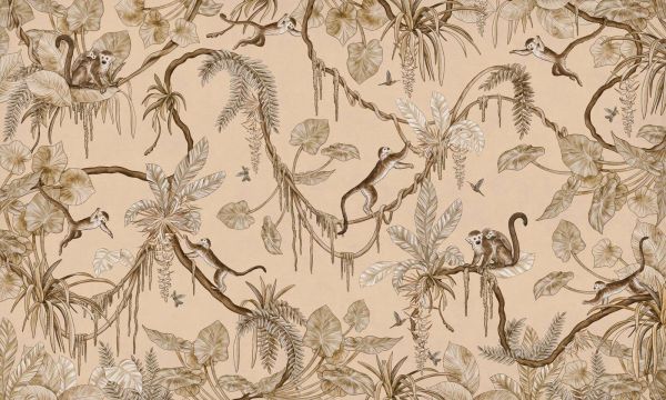 Papier peint panoramique - Singes ludiques - Vintage - Beige