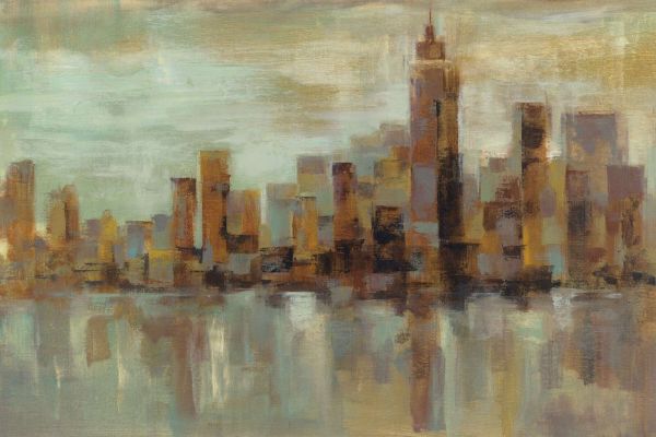 Skyline brumeux en lumière cuivrée en différents matériaux