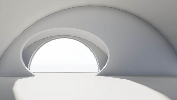 Un tunnel blanc en 3D où la lumière du soleil pénètre.